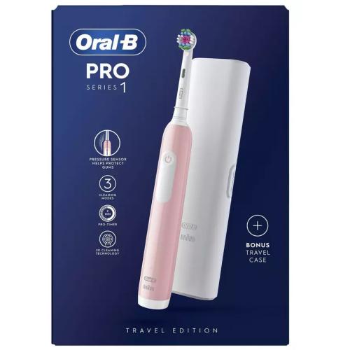 Experience Oral-B Pro Series 1 from the No1 brand used by dentists worldwide. The Series 1 electric toothbrush helps you brush like your dentist recommends for 2 minutes with the professional timer and it notifies you every 30 seconds to change the area your are brushing. It removes up to 100% more plaque than a standard manual toothbrush for healthier gums, and it starts making your smile whiter as of the first day of brushing by removing surface stains.