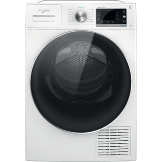 This Whirlpool freestanding Tumble Dryer features: outstanding 9kg drum capacity, so you will never run out of space. Exclusive 6th SENSE technology that constantly monitors the moisture in the drum, protecting your clothes and providing ideal drying results. Elegant screened door design. Heat pump technology that effectively re-heats the air in the appliance, significantly reducing energy consumption. 3Dry Air Care technology with 3D AirFlow and SoftMove, ensuring a delicate drying action, with multiple steam jets and air cushions that both dry and protect your laundry.