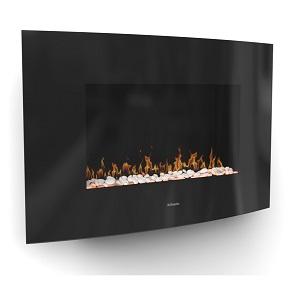 The thermostatic controls mean you can set your fire to produce heat when the room drops to a certain temperature, helping to maintain comfort in your home. The curved black frame is hung on the wall, providing a sense of depth thanks to the various coloured backlighting settings.