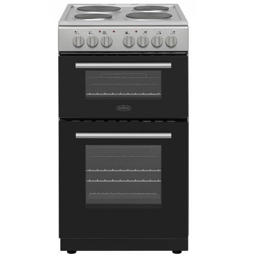50cm Double Oven Electric 4 Solid Cooking Zones, Main Oven Fan , Top Oven and Grill , Silver