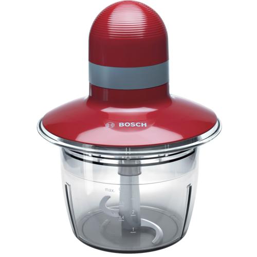 This red Bosch MMR08R1GB Mini Chopper gives you a neat, powerful way to prepare different ingredients quickly.