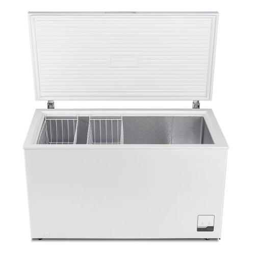 Cut down on trips to the supermarket thanks to this chest freezer from Powerpoint. Because it has a generous 400-litre capacity, it can hold lots of food shopping. You can use the Temperature Controls to create the ideal environment inside to suit the food being stored. The controls allow you to use this unit as a FRIDGE or a DEEP FREEZER due to the clever control panel that can be adjusted from a fridge temperature of +8 degrees to a Deep freeze temperature of -32 degrees. The freezer has strong steel hinges and a counter-balanced lid which is safer to use and can be lifted as high as it needs to be without fear of it falling on your head. It also has wheels for easy movement and a defrost drain to allow a quick defrost when required. There is an inverter motor that is very quiet and allows the freezer to run much more efficiently than conventional freezer motors. It is suitable for use in garages.