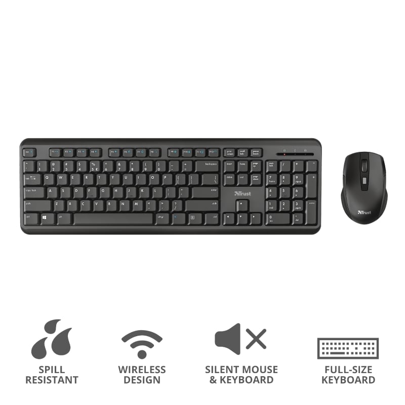 reliable wireless connection with up to 10m range via one USB receiver for both the keyboard and mouse