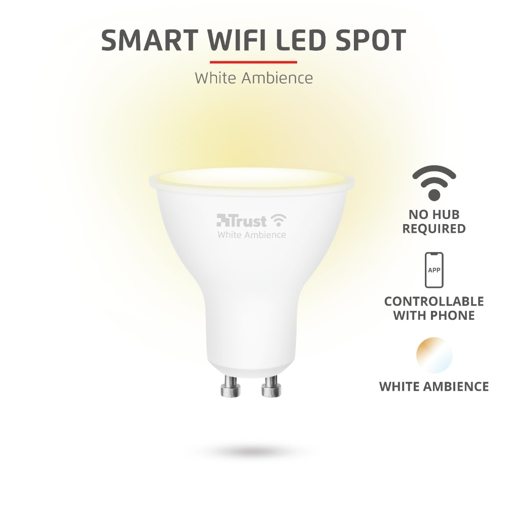 Smart WiFi LED spot GU10 white ambience that can be controlled with your smartphone. Connection via WiFi (2.4GHz), no hub required.