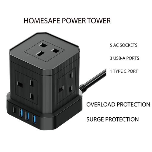 5 power outlets + 1 type-c port + 3 usb-a ports