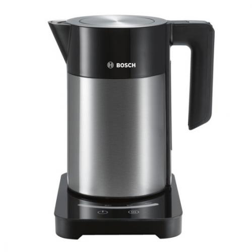 This Bosch digital kettle features 7 temperature settings from 70 C to boiling. If you are not quite ready for your drink once the water has reached your desired temperature then the keepWarm function allows you to keep your water at your desired temperature for up to 30 minutes. Enjoy easy operation with the practical touch display. The surface temperature of the appliance is reduced due to double-walled stainless steel housing. The triple Safety Feature automatically shuts-off the kettle if it overheats and oil-dry protection switchs-off the kettle when it is lifted off base for extra piece of mind.
