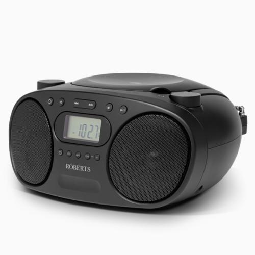 A simple and intuitive portable FM/AM radio boombox housed in a sleek portable design with CD player, headphone socket and dual speakers for clear stereo sound.